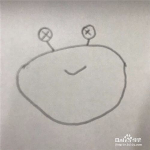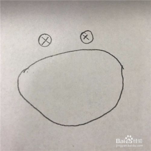 画两个X,然后在X外面画一个圆圈,作为螃蟹的眼睛,见下图