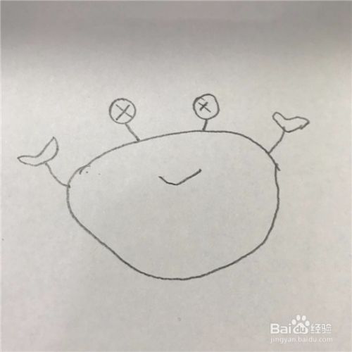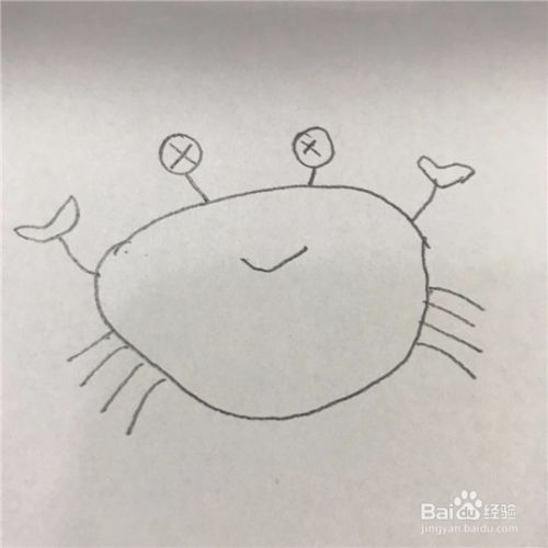 在螃蟹的身体上画一个圆弧,作为螃蟹的嘴巴,见下图