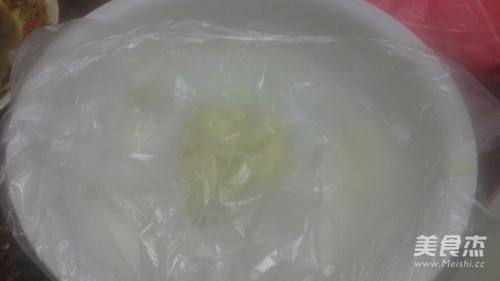 6揉个2分钟成团,在揉3分钟吧,我懒,就揉了五分钟,你们要是勤快,那自个揉去吧。揉完了吗?不想揉就算了吧。找个盆子面团放在里面,盖张保鲜膜,松弛30分钟 ,不用发酵
