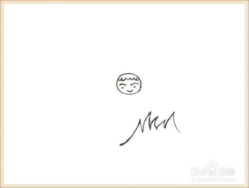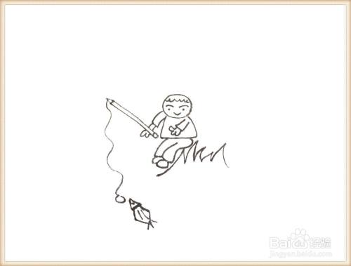 最后画出小孩手上拿着的鱼杆和小鱼就可以了,如图所示,钓鱼的小孩简笔画就画好了!