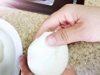 分成20g/个,揉圆,压扁,放入馅料,收口。