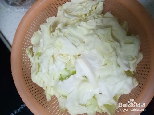 没吃完的凉拌猪耳朵,包菜撕成块后冲洗干净。