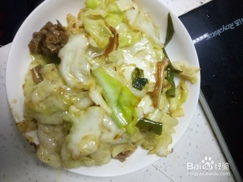 炒锅预热后加入适量的油,油温升起后放入猪耳朵,翻炒一会后加入包菜,翻炒几下后调入适量的盐、少许南德、一勺生抽翻炒均匀。翻炒一会后可以稍微加点清水,以免菜糊。