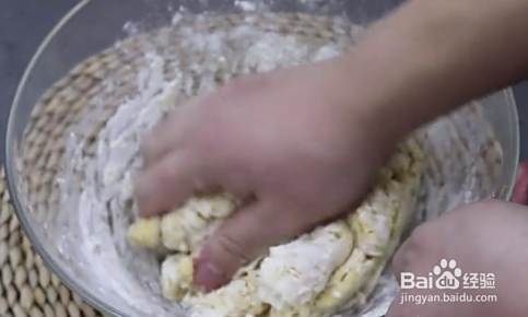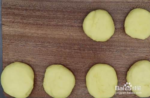 把发酵的面团揉至光滑后,分成光滑的小段。