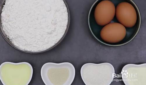 需要:面粉、鸡蛋、食用油、酵母、白糖、奶粉。