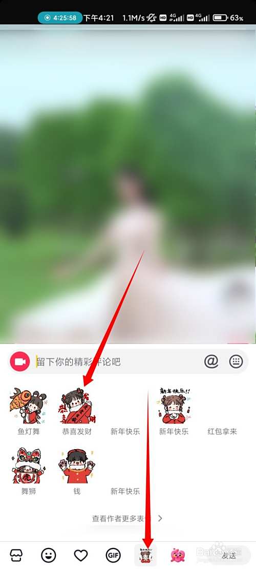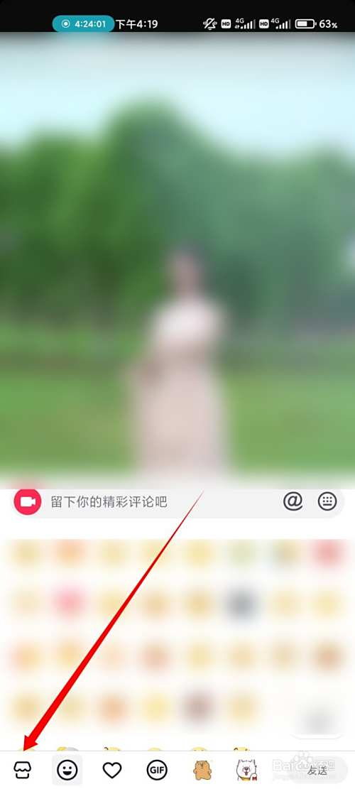 在抖音中打开任意视频,点击右下角的表情图标。