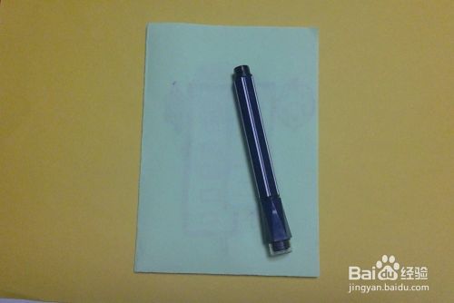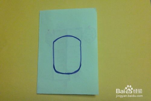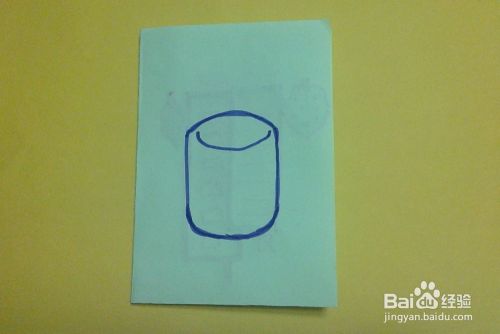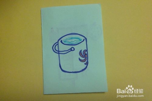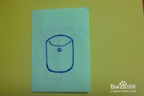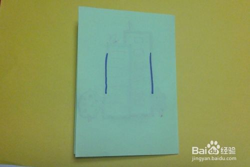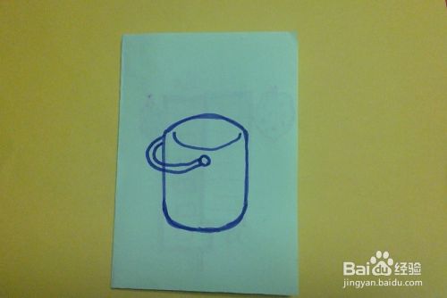如图,在材料纸的适当位置画小水桶的两侧画线。确定大小。