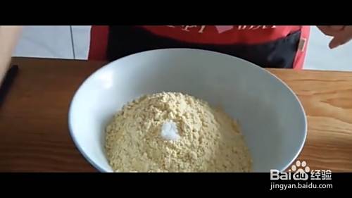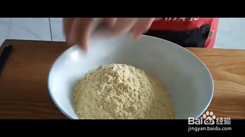 找个干净容器。倒入100克小麦面粉,100克荞麦面粉,100克玉米面粉,100克豆面粉