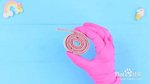 把彩色的糖条卷成卷。