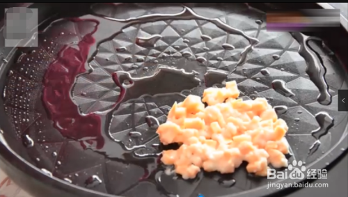 电饼铛预热刷上一层油,舀入一勺红薯,把它整理成圆形