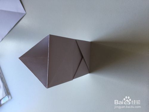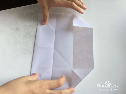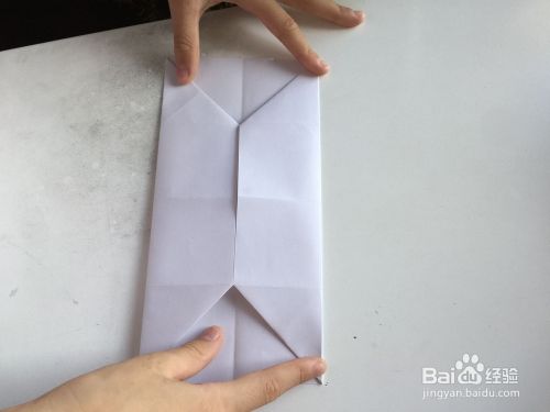 然后再把已经对折三角形的一端,往里中线对折,沿着之前已经折好的。另一端也同样做法。