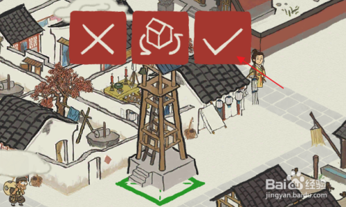 这个时候,望火楼就会出现在建筑区域。点击望火楼上方的√。