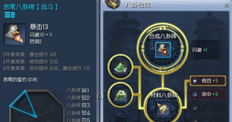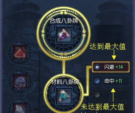 使用其他八卦作为材料时,合成的属性将部分继承材料八卦的属性,也就是说属性值越高的材料八卦,折算后也越容易达到合成八卦的最大值。