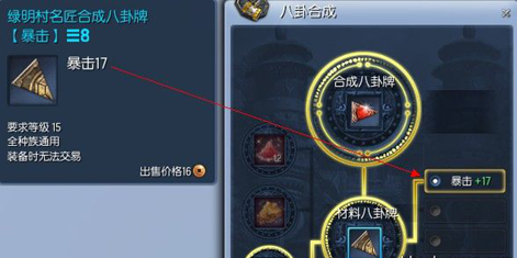 我们首先使用太尚门制造的合成专用牌:[绿明村名匠合成八卦牌]作为材料来强化[八卦A]