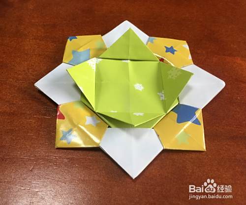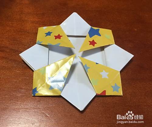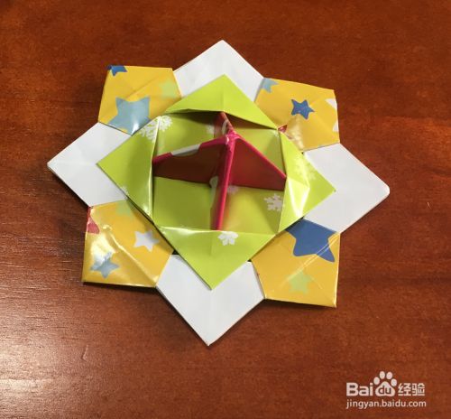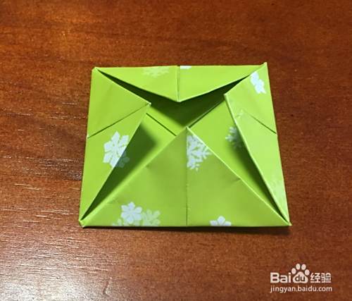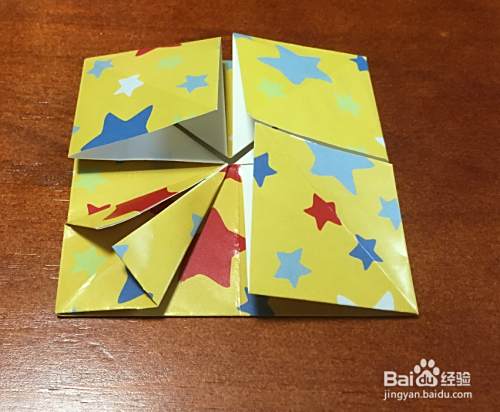 翻面,四角再向中心折叠,再翻面,将里面的四个直角反向折叠。