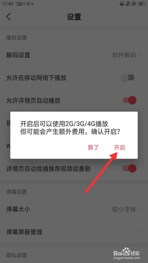最后系统提示已允许使用2G/3G/4G播放视频,这就表明我们成功开启允许在移动网络下播放了。