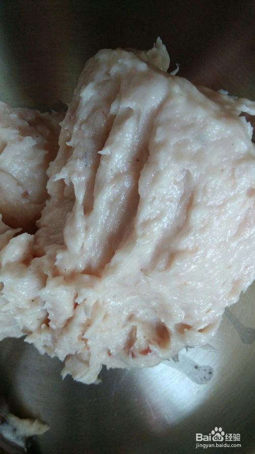 将鱼肉,鸡蛋清,盐,胡椒粉,鸡精,放入搅拌机搅拌成肉蓉。