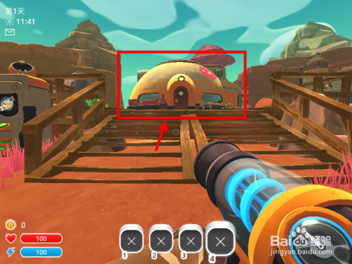 在牧场中间有一个圆顶建筑,那就是我们的家,可以到里面睡觉。