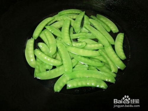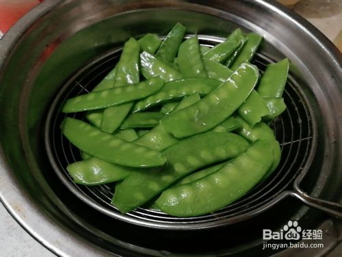 烧适量水,把处理好的荷兰豆倒下去,焯水,先把水烧滚,再把荷兰豆放下去,等水再次滚就捞出来备用。