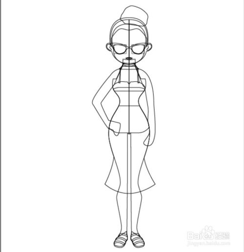 画出女生的半身裙装与双腿、拖鞋等必要的元素。