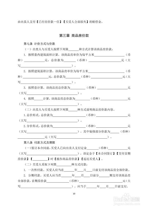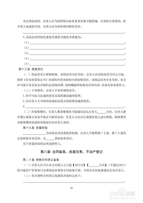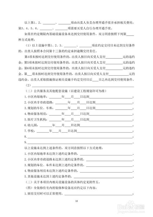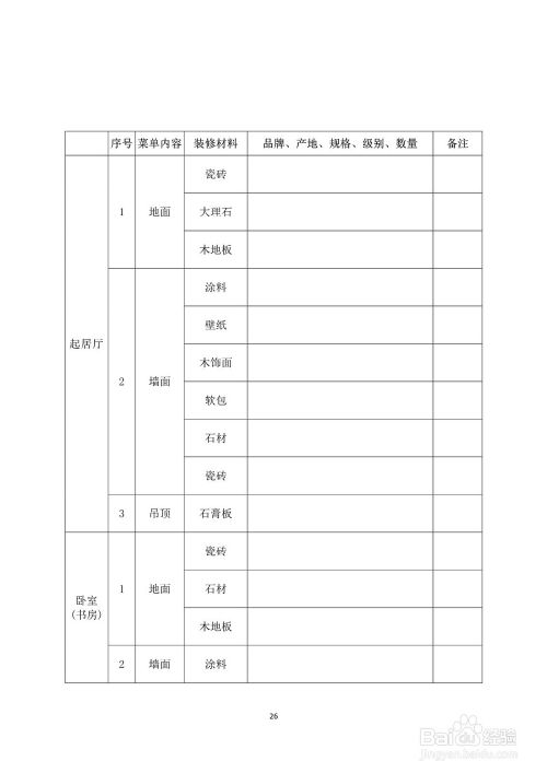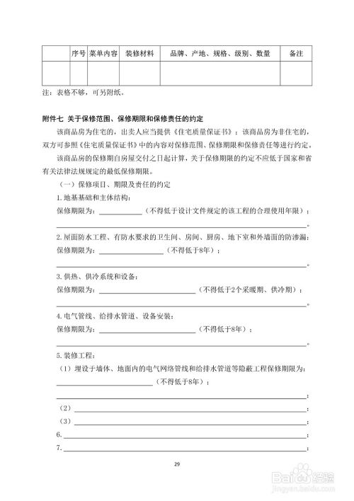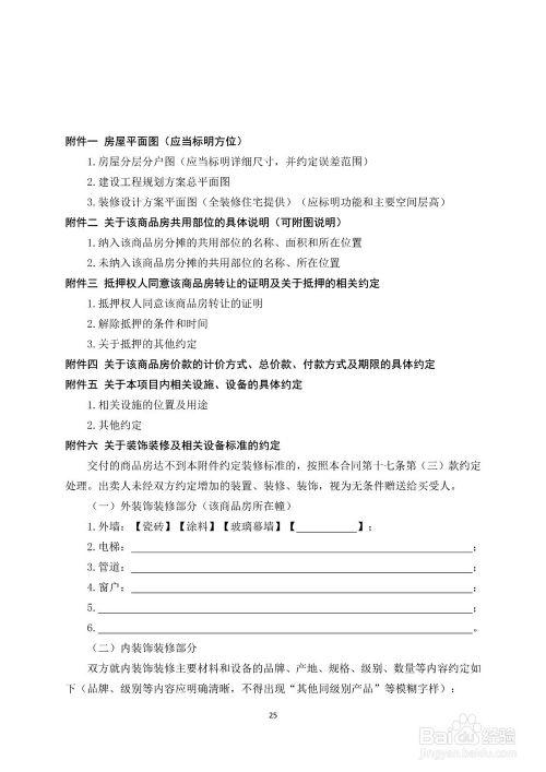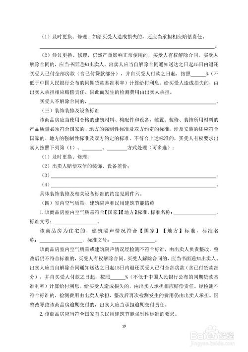 这个可就明细了,现在新版的购房合同规定,对外饰,内饰上都有材料、品牌、规格、级别、数量和施工方式上的规定。具体参见购房合同范本。