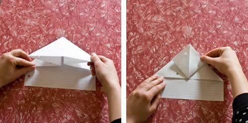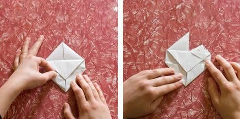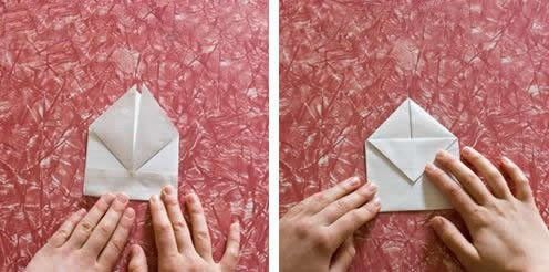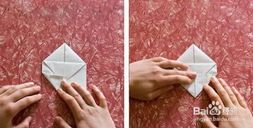 再将左右两个处在中间的顶角分别向左右两个方向折叠。