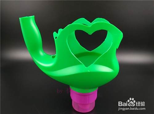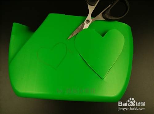 把下半部分瓶子正面画上爱心,并用剪刀剪出来。