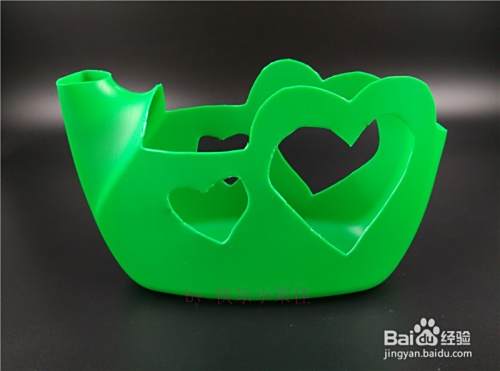 另一个侧面也剪出大小两个爱心,顶端用剪刀如图所示,剪的圆滑一些,可爱的镂空花盆就做好啦。