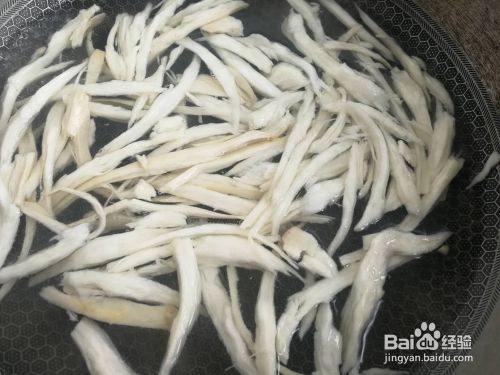 把杏鲍菇洗净,撕成细条,越细越好。要想撕的完整些,建议把杏鲍菇先在锅中蒸熟再撕,这样撕的条还长。