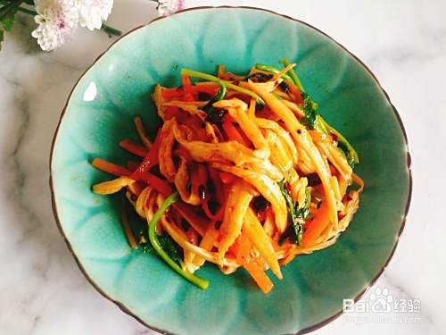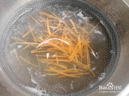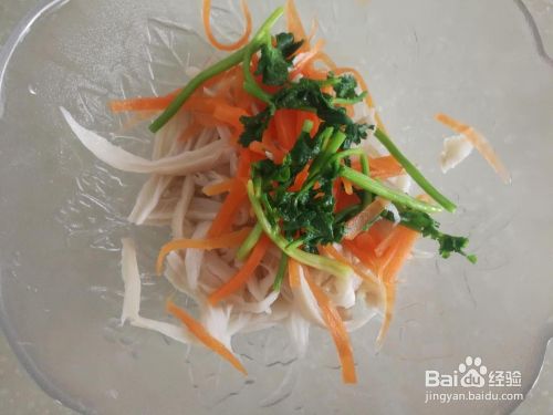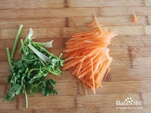 胡萝卜用半个,切成细丝,香菜切段。香菜和胡萝卜是配菜,量少些。