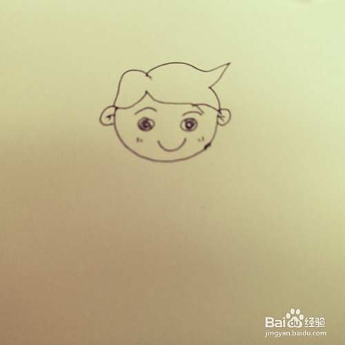 第二步,我们来画卡通新郎的脸部五官表情部分。