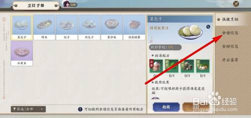 打开之后可以查看不同等级有不同的食谱需要解锁。