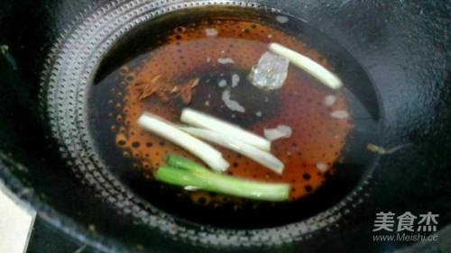 7锅中添汤,放大料葱冰糖和精盐烧开。