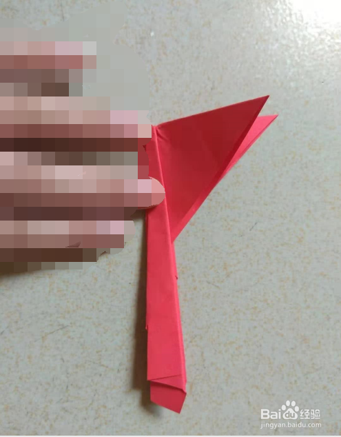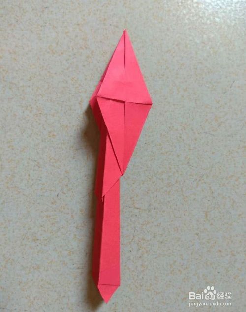 把四边菱形左右两个角向中线翻折,另一面也一样折好,然后把中间夹着的短边向上翻折,并把角尖折出凤凰的嘴巴,再把长边向上翻折。(第7步和第8步的折法和折千纸鹤的折法一样)