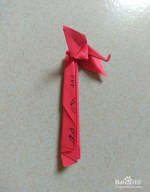 用剪刀按照画出的图案来剪,然后把长边打开一些,一只凤凰就折好了。