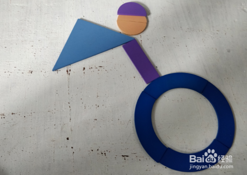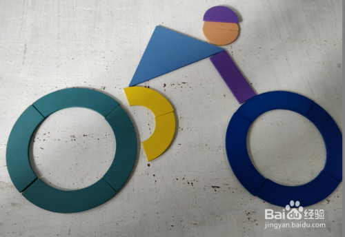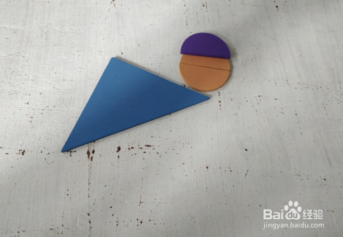 摆上上下挨着的黄色弧形,放在三角形下面挨着,如图。