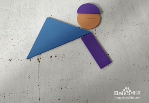 摆上紫色长方形,放在三角形右下挨着,如图。