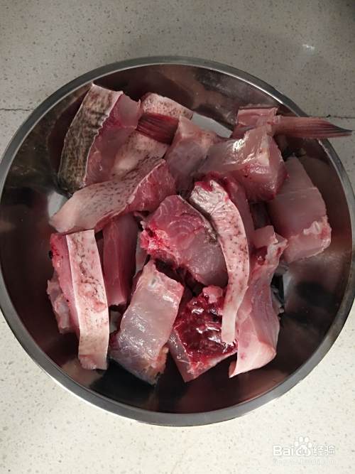 把胖头鱼分割成块儿,块儿要大一点儿。要把洗鱼时的水分控干。避免下锅时水和由迸溅。