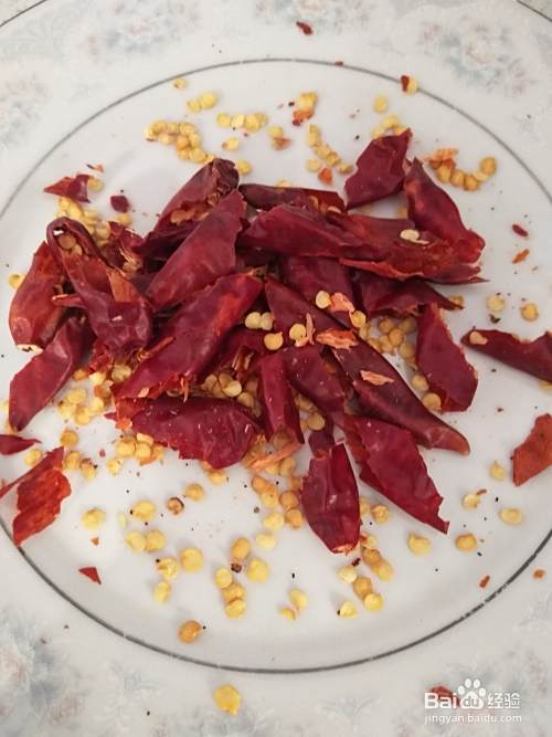 最提味儿的就是小辣椒了。准备30克。用剪子斜着剪成段儿。备用。