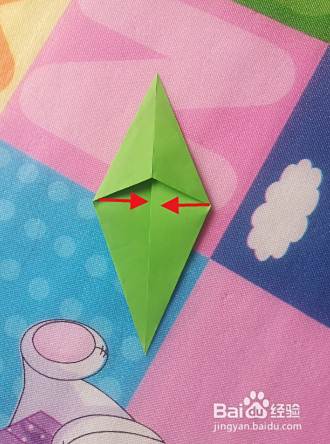 左右两角向上中间,使两下斜边与中线对齐。