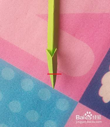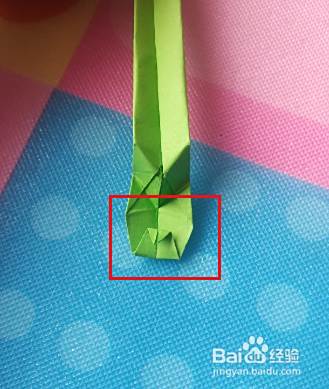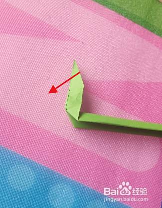 折好后,将下角沿红线下里折。