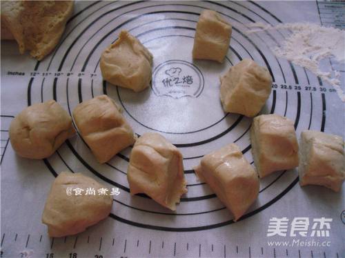 5将排气后的面团分割成大小一样的小面团,整成圆形馒头状,遮上保鲜膜,静置15分钟再次醒发