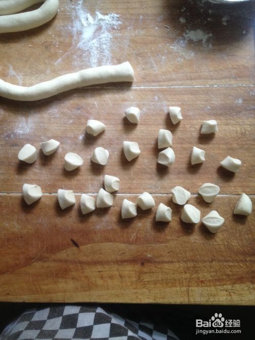 将搓好的条用刀切成约两公分的块,然后均匀的撒上面粉,并沿刀切的这一面用力摁下,这样包饺子的剂子就做好了