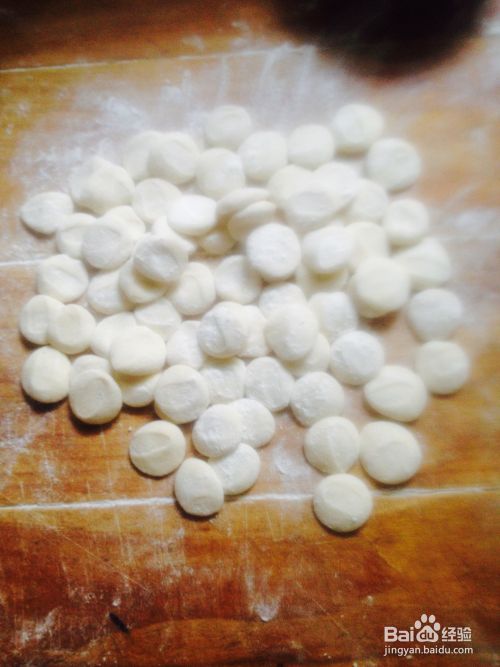 把剂子擀成约五公分左右的饺子皮,最好中间厚两边薄。