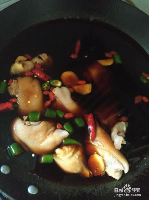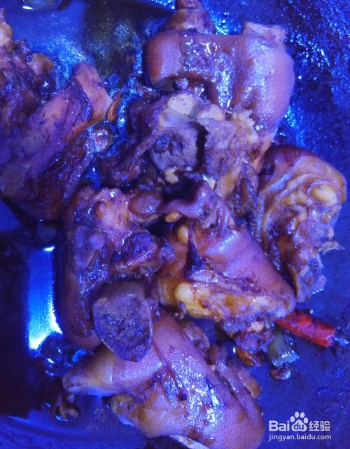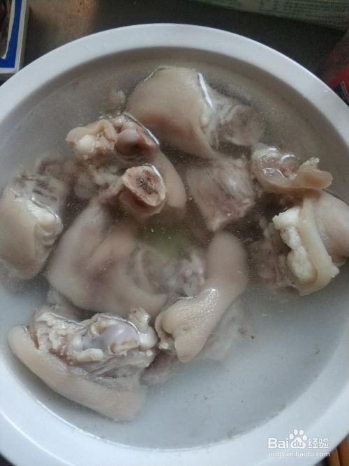 如果锅里有浮沫的话捞出来,最后快要出锅的时候放入盐,如下图所示,就是没有放油清炖的猪蹄,吃起来一点也不腻
