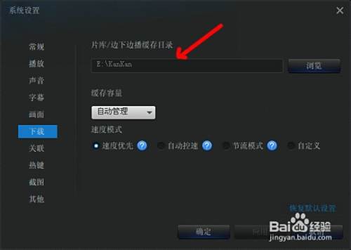 在弹出的“系统设置”对话框中选择左侧的“下载”项,在右侧就会显示缓存的位置。