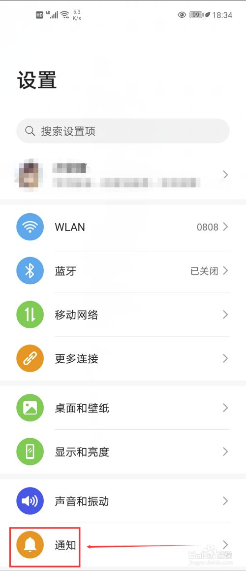 在设置中往下拉找到“通知”