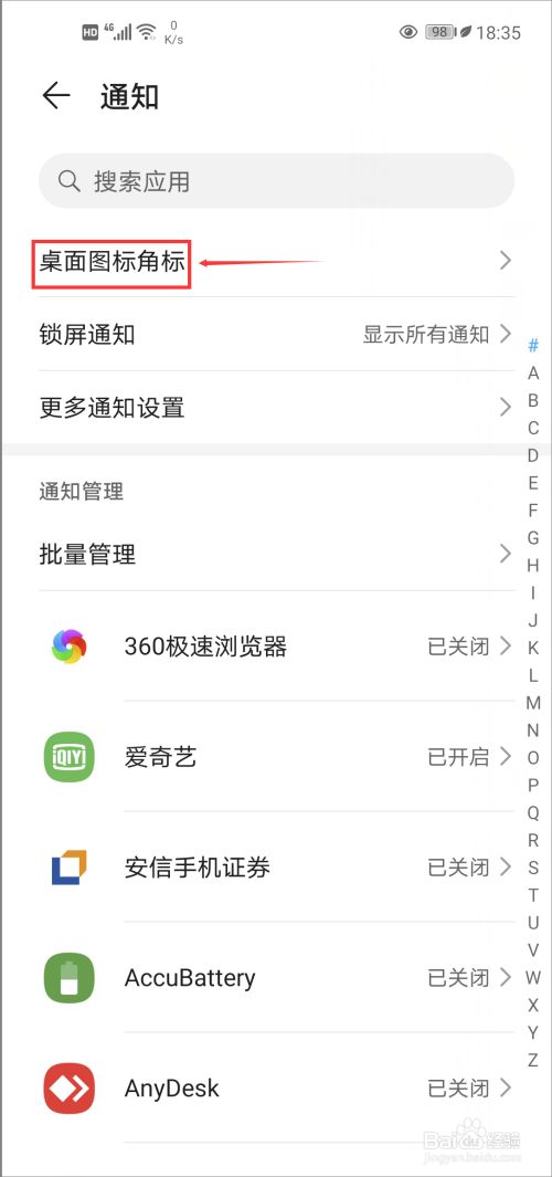 点击“通知”后,会出现以下界面,再点击“桌面图标角标”