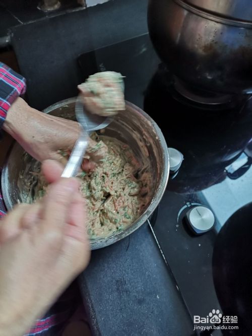 肉沫中加入盐、料酒、鸡蛋、香菜沫、少许淀粉快速搅拌均匀备用。