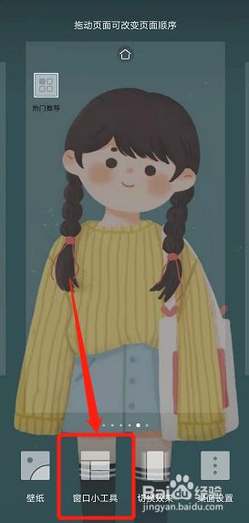 在华为手机空白桌面处长按弹出下方的列表,点击窗口小工具。